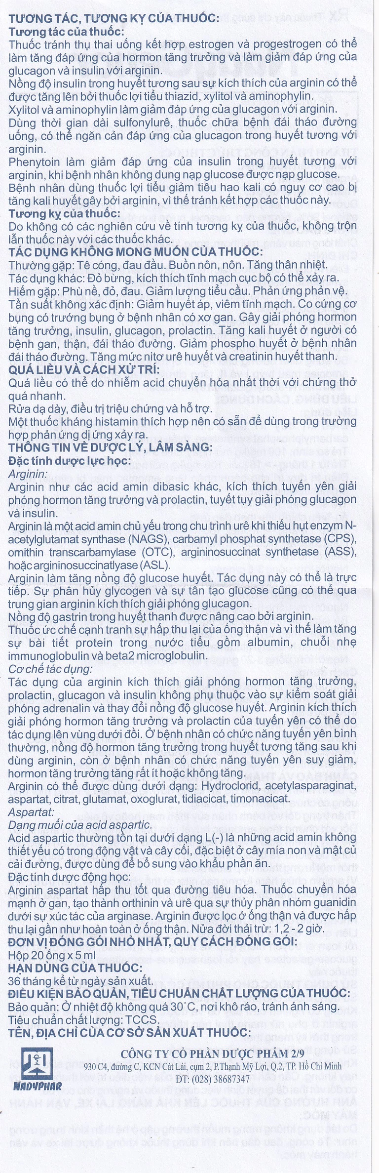 - Quá mẫn với arginin aspartat hay bất kỳ thành phần nào của thuốc.