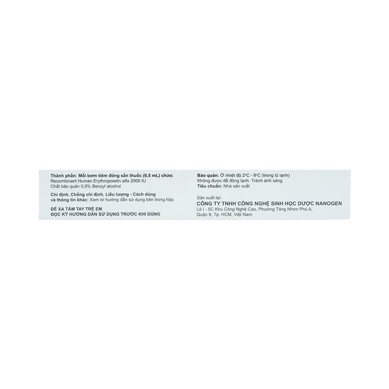 Lưu ý: Trường hợp bệnh nhân tự dùng thuốc tại nhà: Cán bộ y tế cần thông tin cho bệnh nhân biết về cách bảo quản chế phẩm erythropoietin để đảm bảo việc tuân thủ đúng điều kiện bảo quản như khuyến cáo nêu trên.