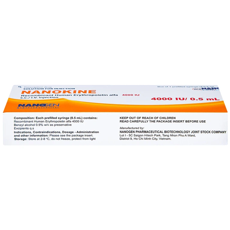 Thuốc tiêm Nanokine 4000IU/0.5ml Nanogen điều trị thiếu máu