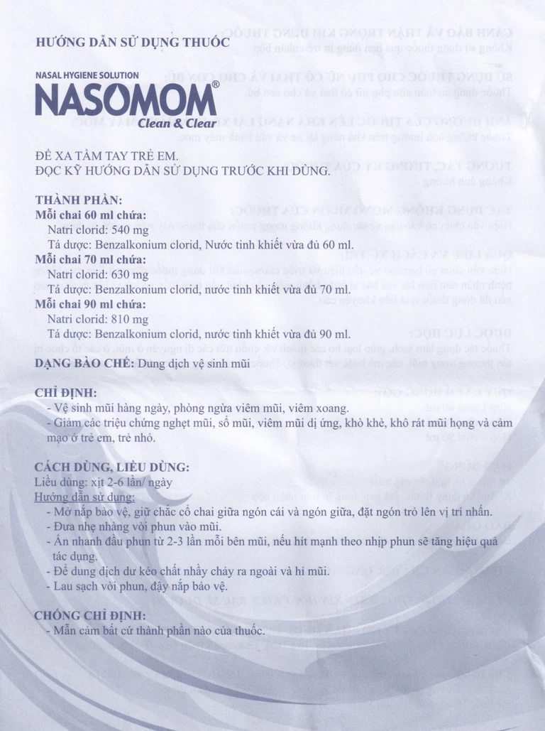 Thuốc Nasomom Clean Clear chống chỉ định trong các trường hợp sau: