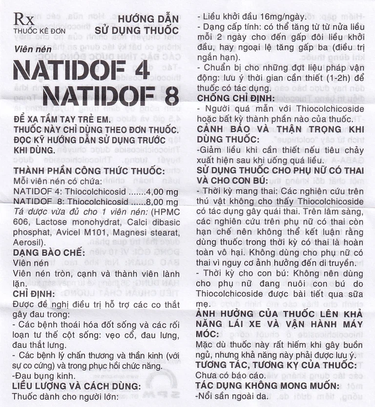 Thuốc Natidof 8mg dùng đường uống.
