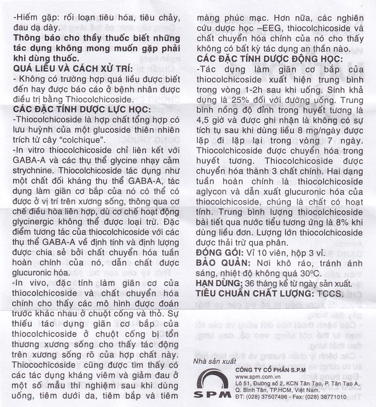 Không có trường hợp quá liều được biết đến hay được báo cáo ở bệnh nhân được điều trị bằng Thiocolchicoside.