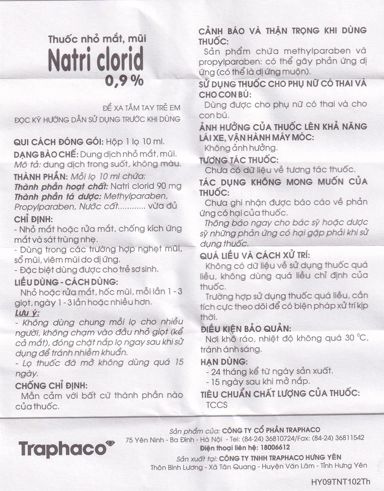 Cách dùng Thuốc nhỏ mắt mũi Natri Clorid 09%