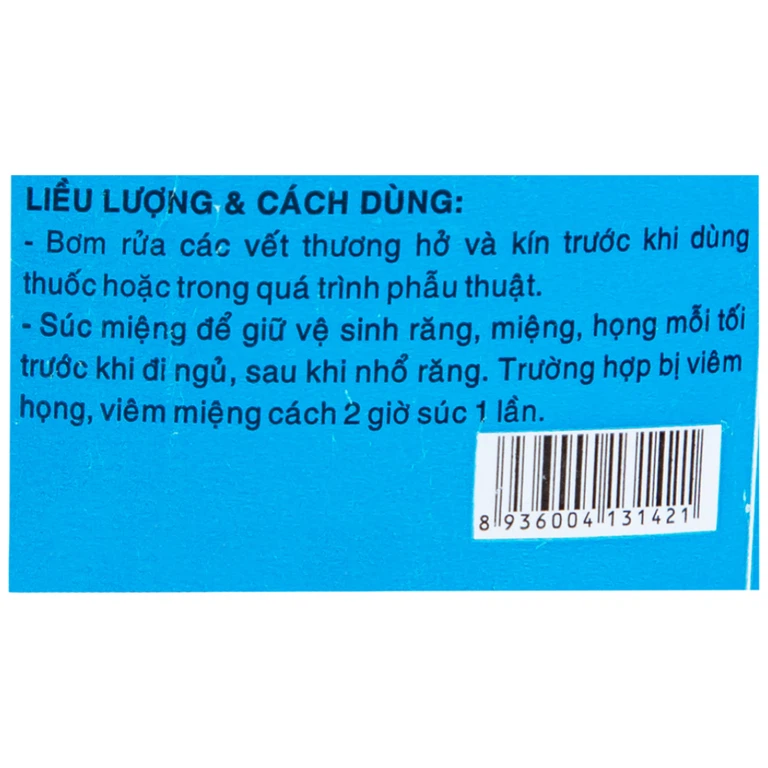 Dung dịch vô trùng Natri Clorid 0.9% Dược 3-2 rửa vết thương hở và kín, súc miệng (1000ml)