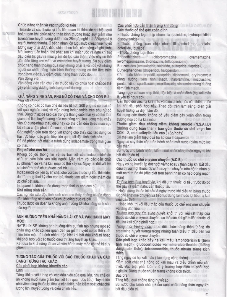 Natrilix Sr không ảnh hưởng đến sự tỉnh táo nhưng một số phản ứng khác có liên quan đến sự giảm huyết áp có thể xuất hiện trên một số bệnh nhân, đặc biệt khi bắt đầu khởi trị hoặc khi phối hợp với các thuốc điều trị tăng huyết áp khác.