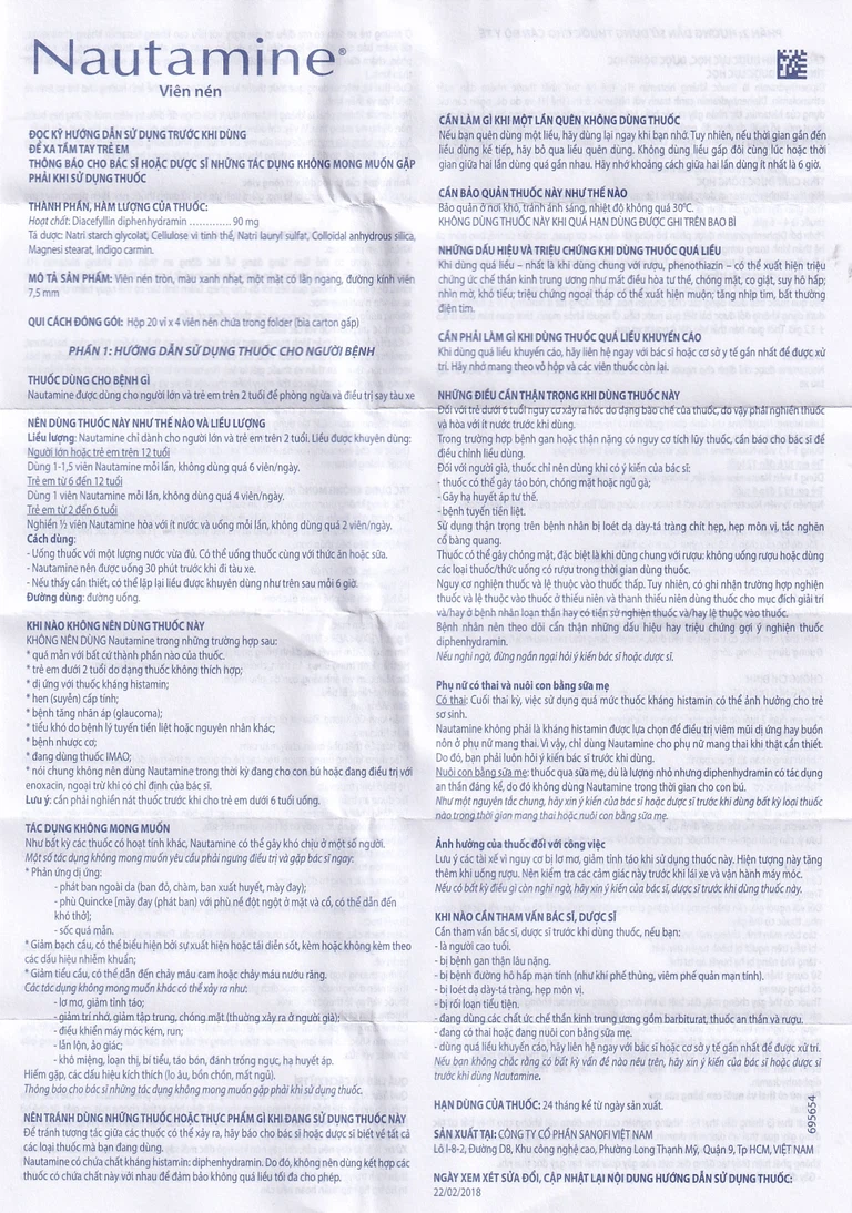 Thuốc qua sữa mẹ, dù là lượng nhỏ nhưng diphenhydramine có tác dụng an thần đáng kể, do đó không dùng Nautamine trong thời gian cho con bú.