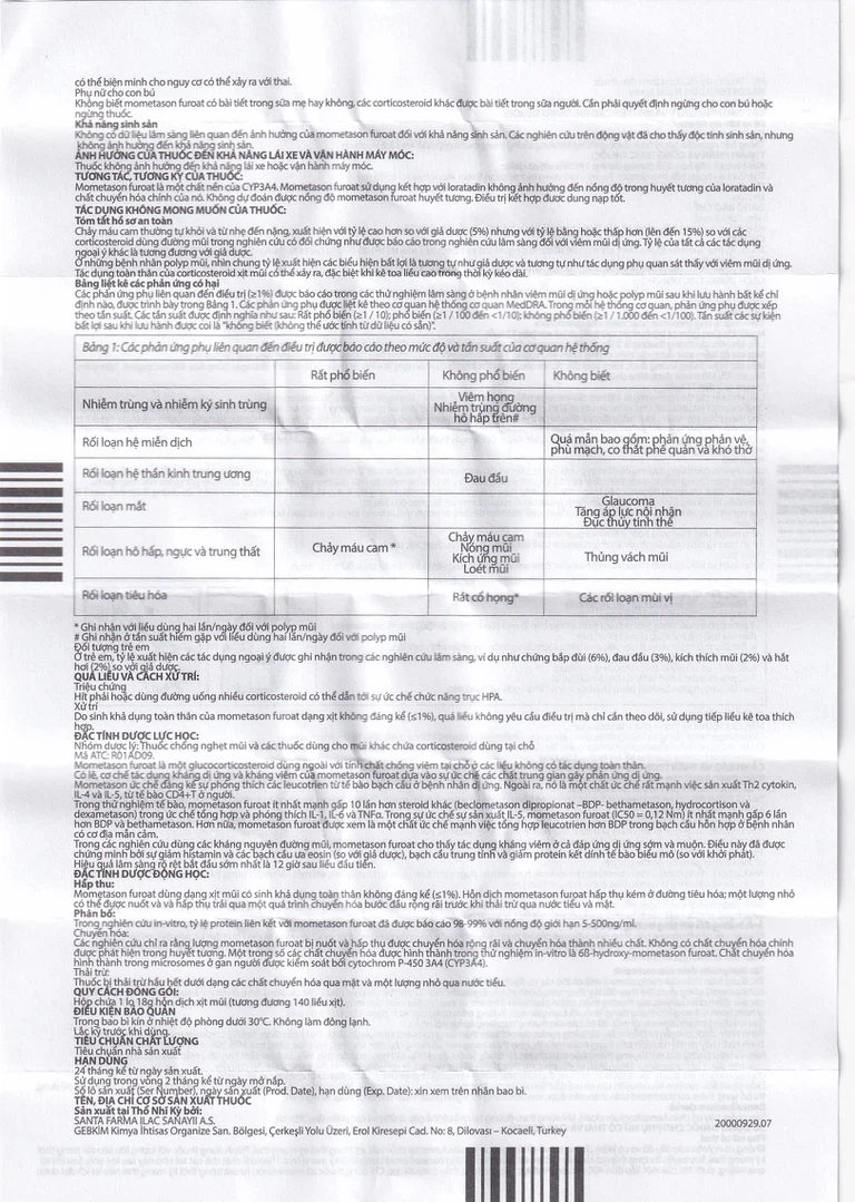 Mỗi nhát xịt chứa khoảng 100μg hỗn dịch mometasone furoate chứa mometasone furoate monohydrate tương đương với 50 microgram mometasone furoate.