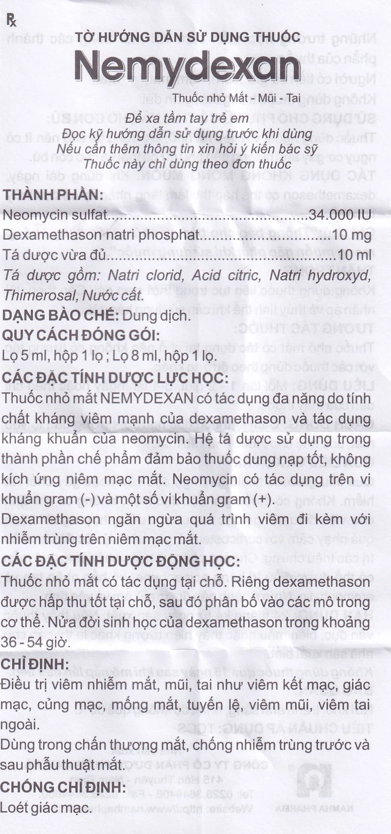 Thuốc nhỏ mắt mũi tai Nemydexan Nam Hà điều trị viêm kết mạc, viêm mũi, viêm tai ngoài (8ml)