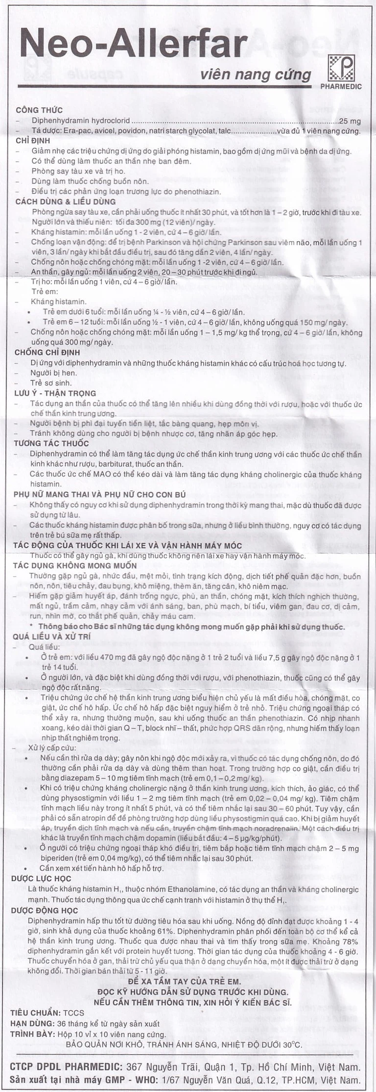 Cách dùng Viên nang cứng Neo-Allerfar 25mg