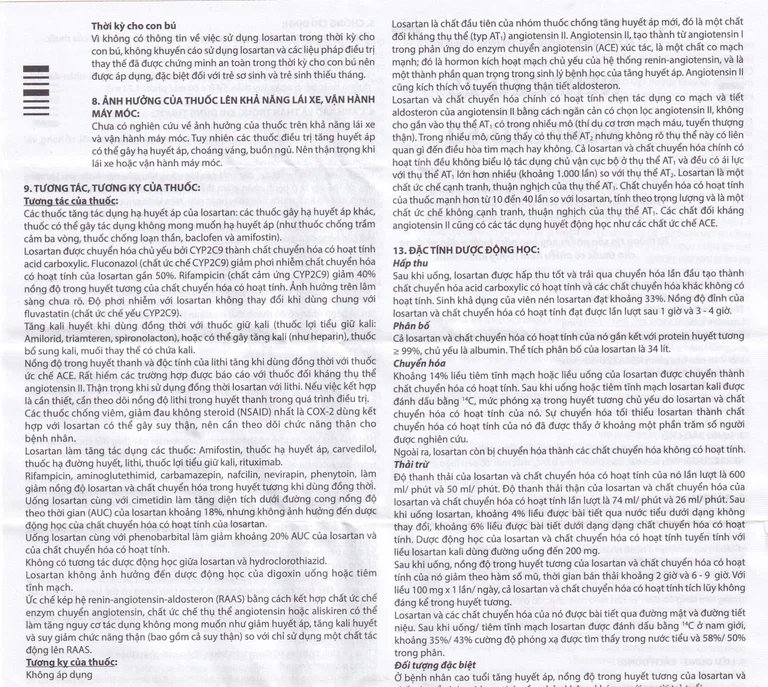 Ở bệnh nhân cao tuổi tăng huyết áp, nồng độ trong huyết tương của losartan và chất chuyển hóa có hoạt tính về cơ bản không khác so với người trẻ tuổi.