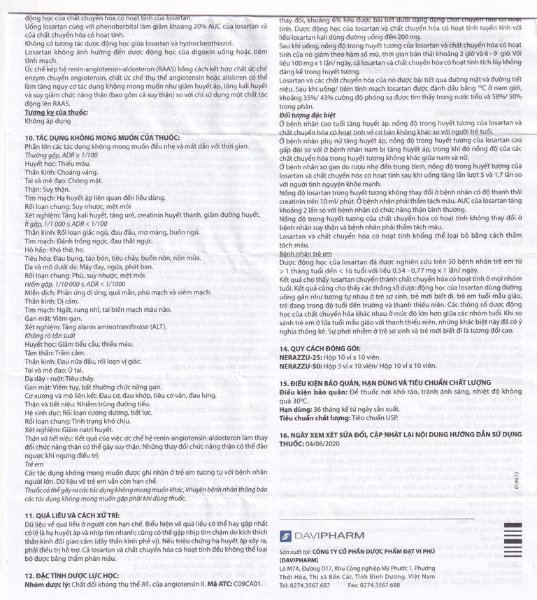 Nhóm dược lý: Chất đối kháng thụ thể AT, của angiotensin II. Mã ATC: C09CA01.