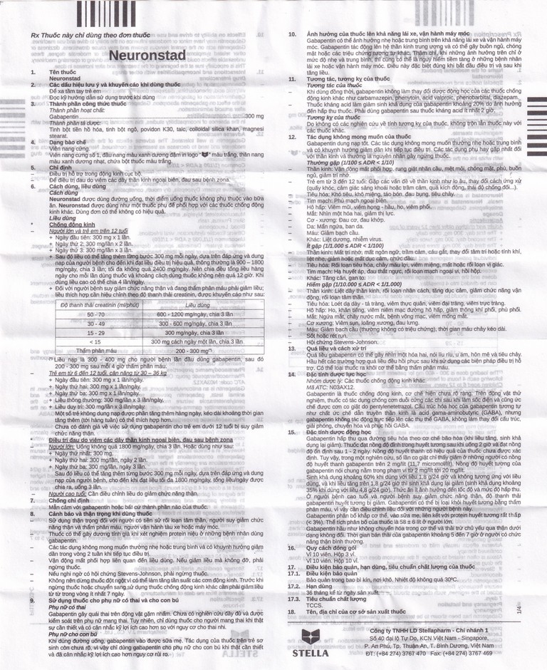 Thuốc Neuronstad dùng đường uống, thời điểm uống thuốc không phụ thuộc vào bữa ăn. Neuronstad được dùng như một thuốc phụ để phối hợp với các thuốc chống động kinh khác. Dùng đơn có thể không có hiệu quả.