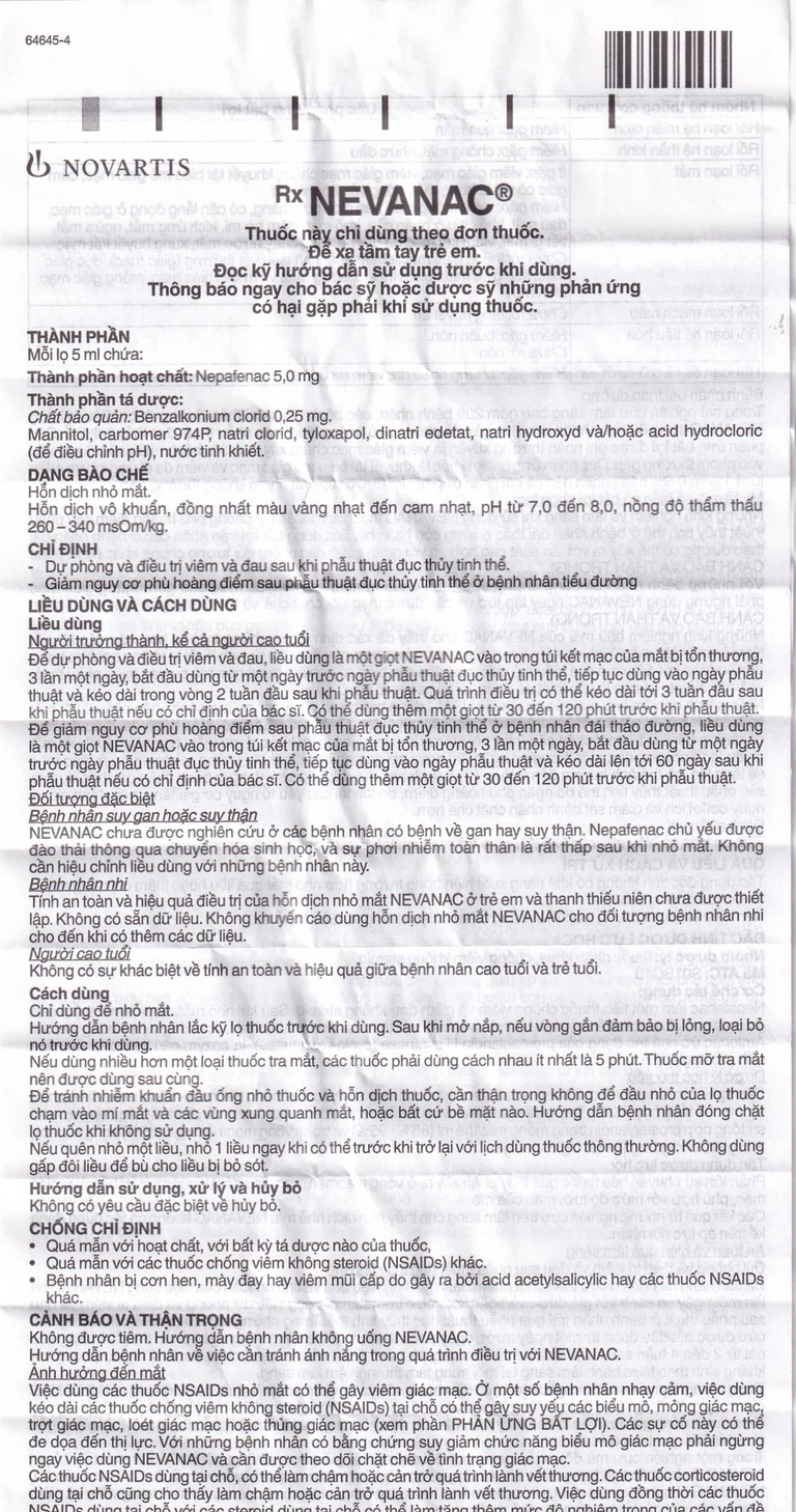 Không được tiêm. Hướng dẫn bệnh nhân không uống hỗn dịch nhỏ mắt Nevanac.