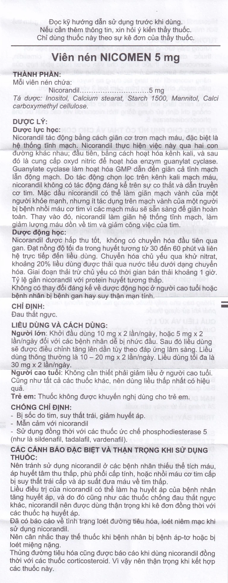 Thuốc Nicomen 5mgđược chỉ định dùng trong các trường hợp sau: Ðiều trị đau thắt ngực .