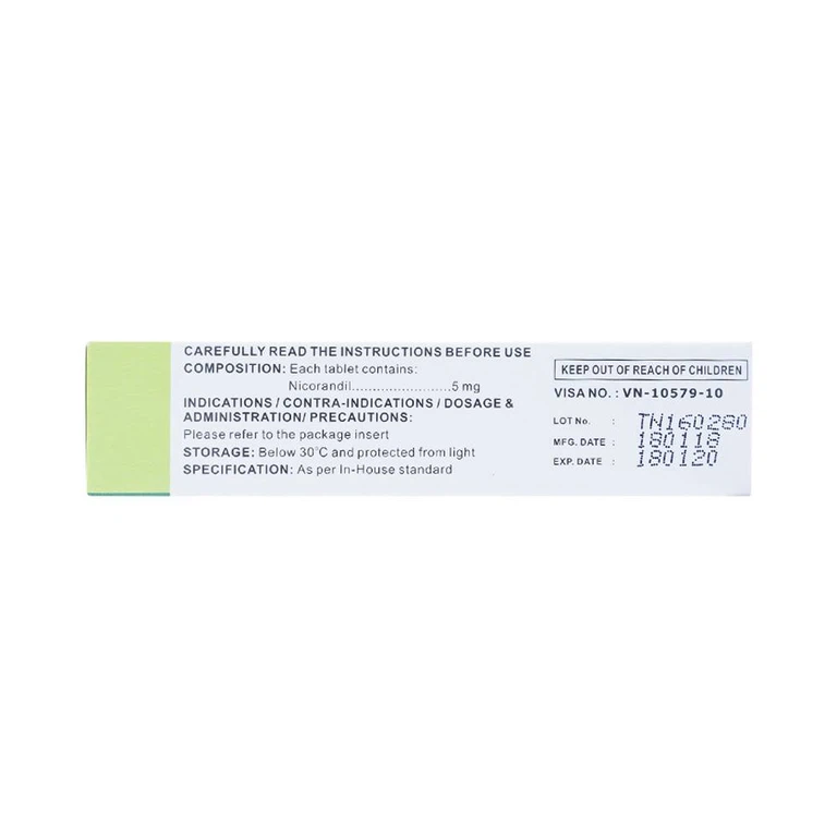 Nicorandil được hấp thu tốt, không có chuyển hóa đầu tiên qua gan. Thuốc đạt nồng độ tối đa trong huyết tương 30 – 60 phút và liên quan trực tiếp đến liều dùng.