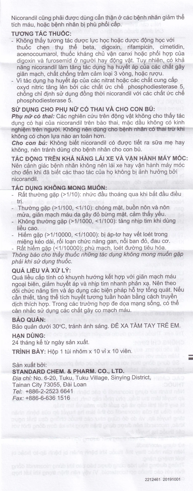 Cảnh báo bệnh nhân không nên lái xe hoặc vận hành máy móc cho đến khi đã biết các thao tác của họ không bị ảnh hưởng bởi nicorandil.