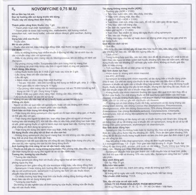 Cách dùng Thuốc cốm Novomycine 075 M.IU