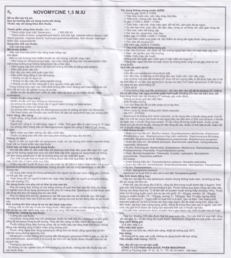 Công dụng của Viên nén Novomycine 1.5 M.IU