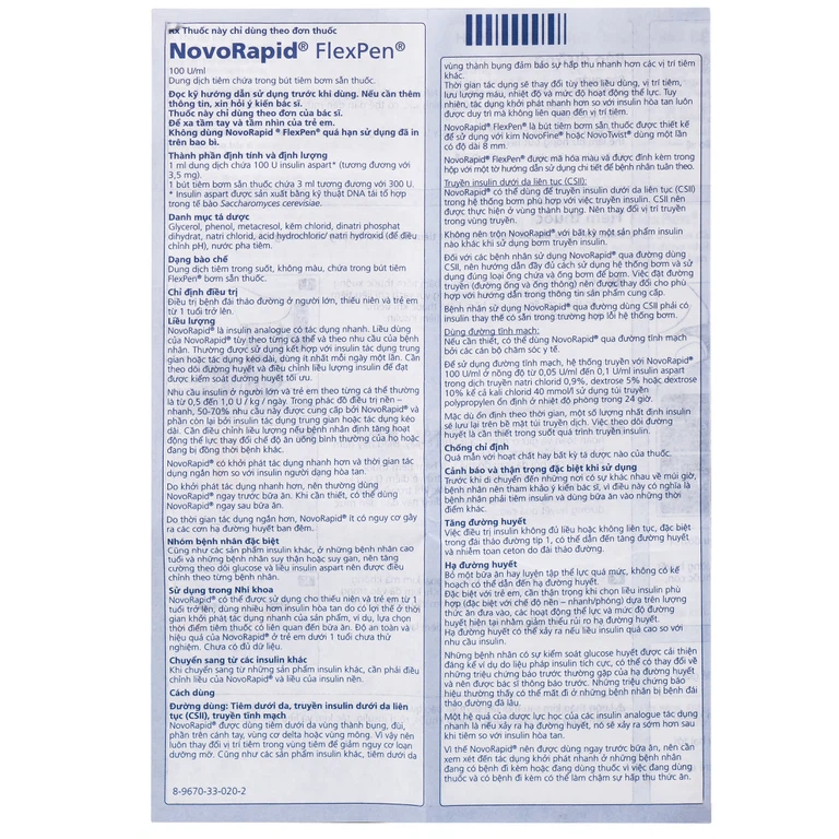 Đọc kỹ Hướng dẫn sử dụng NovoRapid® FlexPen® đi kèm. Bạn phải dùng bút tiêm insulin như được mô tả trong hướng dẫn sử dụng.