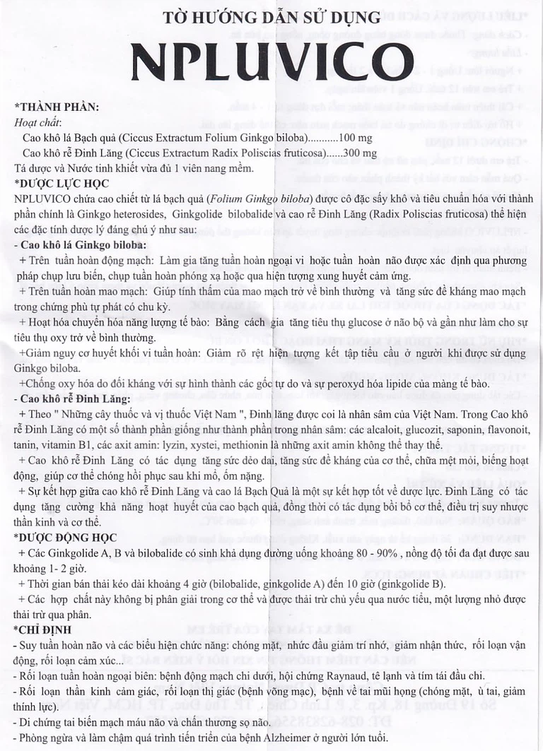 Npluvico không phải là thuốc chống tăng huyết áp nên không thể dùng để thay thế cho các thuốc chống tăng huyết áp chuyên biệt.