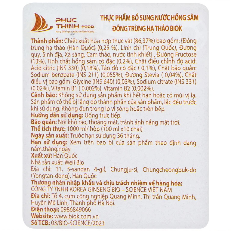 Thành phần của Nước Hồng Sâm Đông Trùng Hạ Thảo