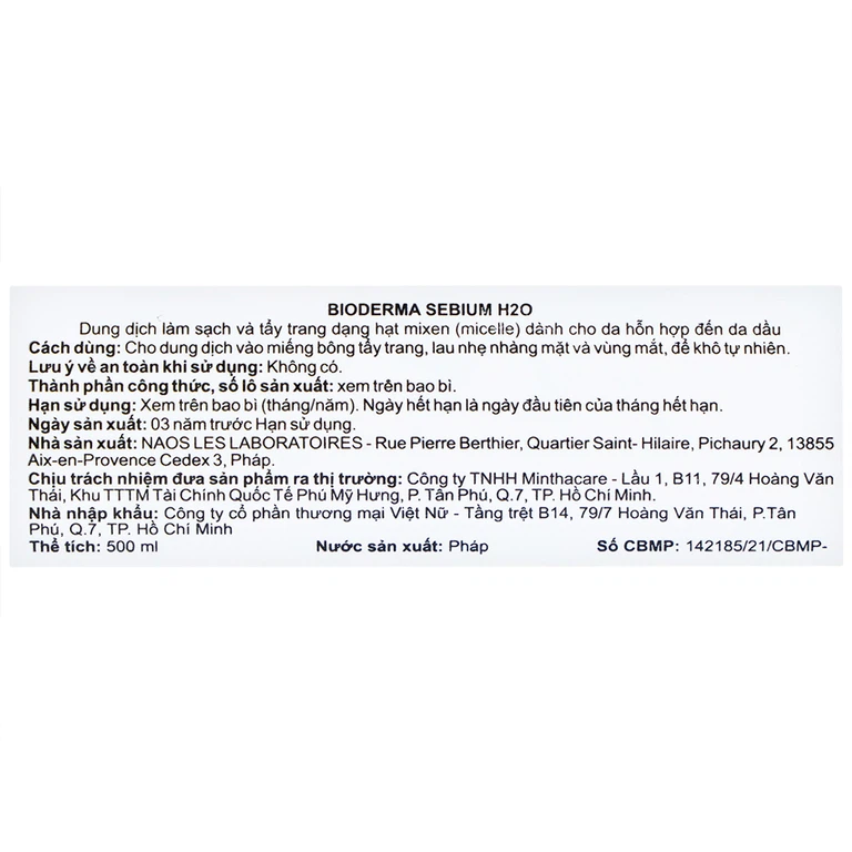 Nước tẩy trang Bioderma Sebium H20 được nghiên cứu và phát triển với công thức đặc biệt dành cho da dầu hoặc da hỗn hợp. Các thành phần hoạt chất chứa trong sản phẩm tương đồng với cấu trúc tự nhiên của da. Bởi thế, lớp trang điểm, bụi bẩn, bã nhờn tích tụ,… sẽ được loại bỏ sạch sẽ, làn da không bị mất cân bằng độ ẩm và độ pH tự nhiên. Điều này đảm bảo an toàn cho da, giúp da không bị kích ứng.