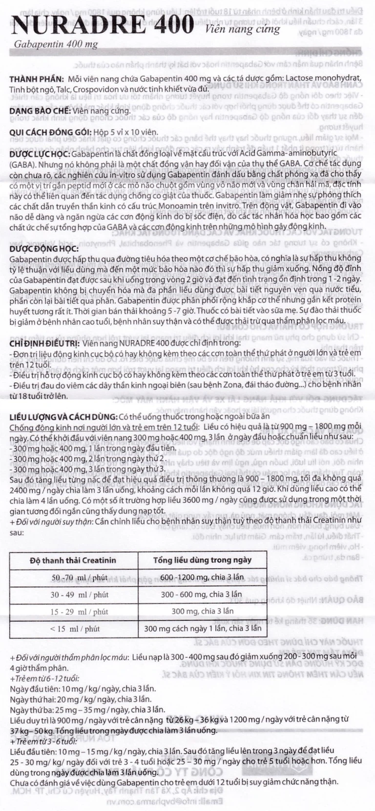 Thuốc Nuradre 400được chỉ định dùng trong các trường hợp sau: