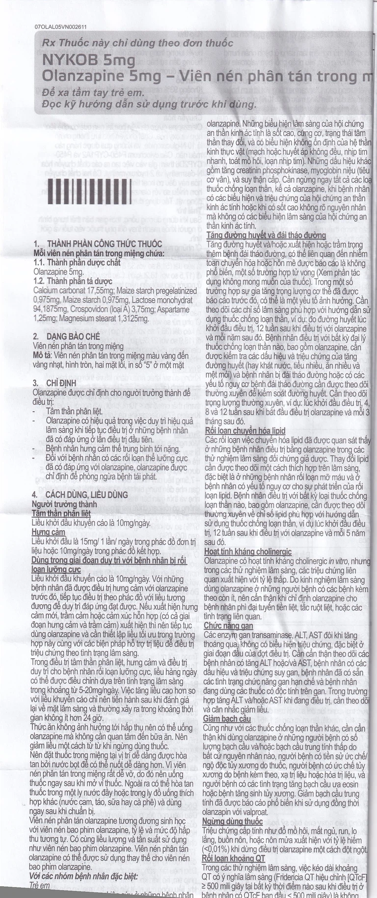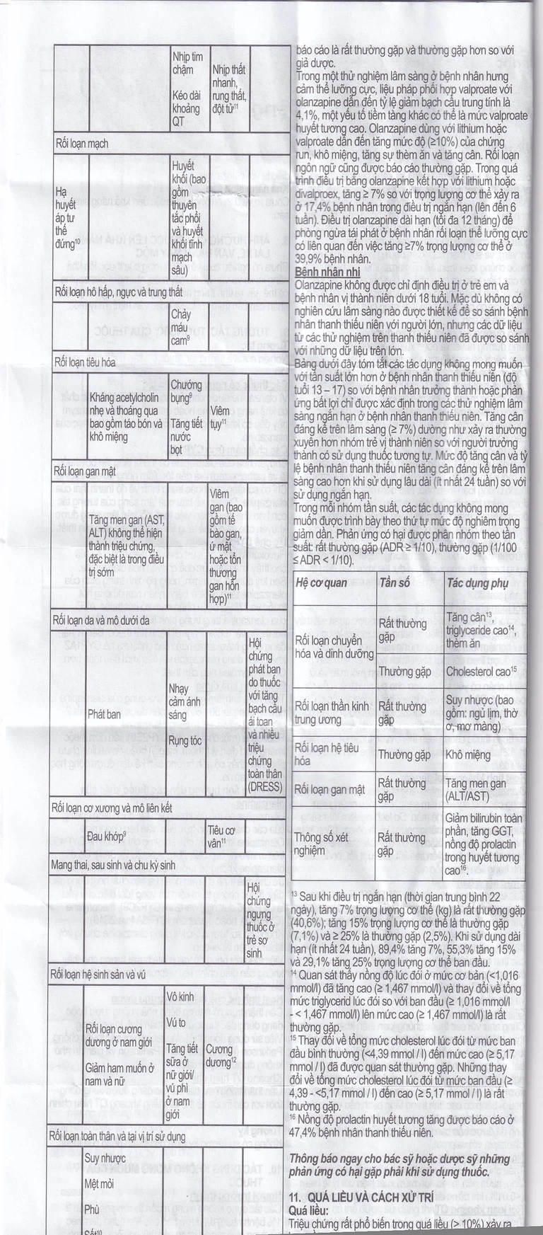- Đối với bệnh nhân có các rối loạn thể lưỡng cực đã có đáp ứng với olanzapine, olanzapine được chỉ định để phòng ngừa bệnh tái phát.