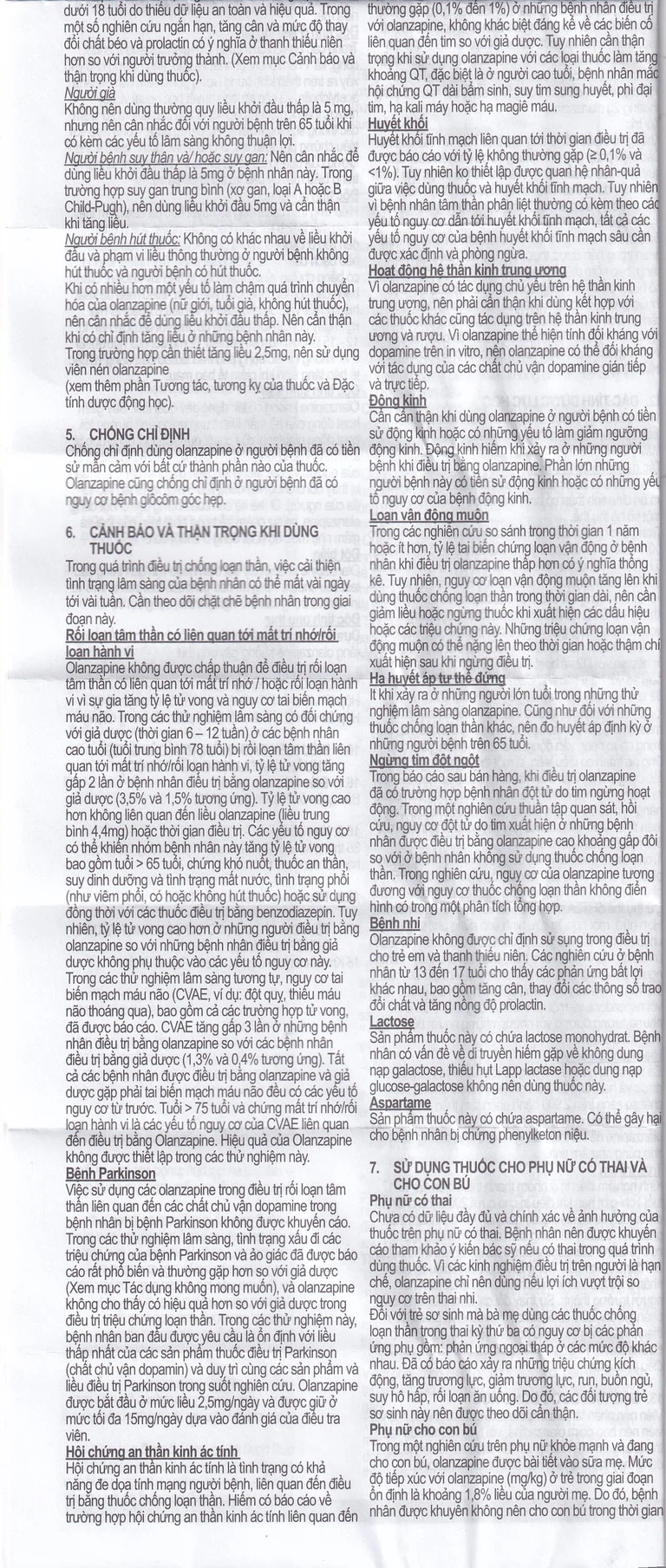 - Olanzapine có hiệu quả trong việc duy trì hiệu quả lâm sàng khi tiếp tục điều trị ở những bệnh nhân đã có đáp ứng ở lần điều trị đầu tiên.