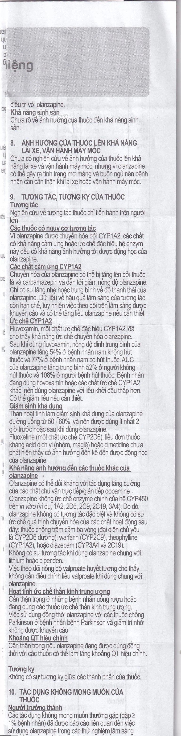 Không có sự tương tác khi dùng olanzapine chung với lithium hoặc bịperiden.
