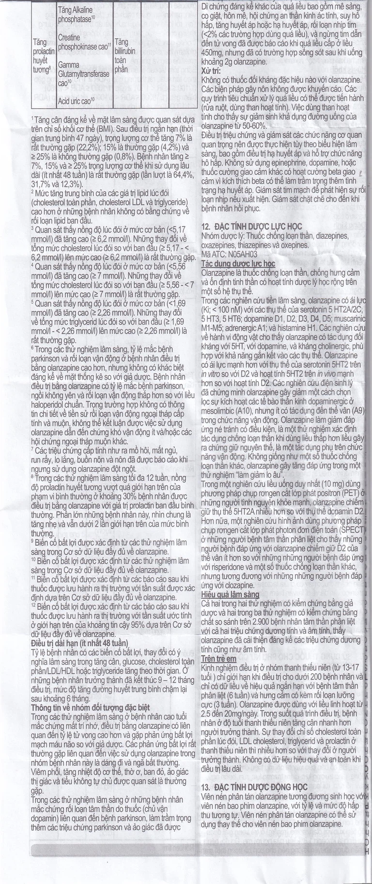 Olanzapine là thuốc chống loạn thần, chống hưng cảm và ổn định tinh thần có hoạt tính dược lý học rộng trên một số hệ thụ thể.