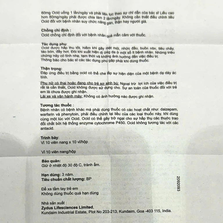 - Ocid chống chỉ định đối với bệnh nhân quá mẫn cảm với thuốc.