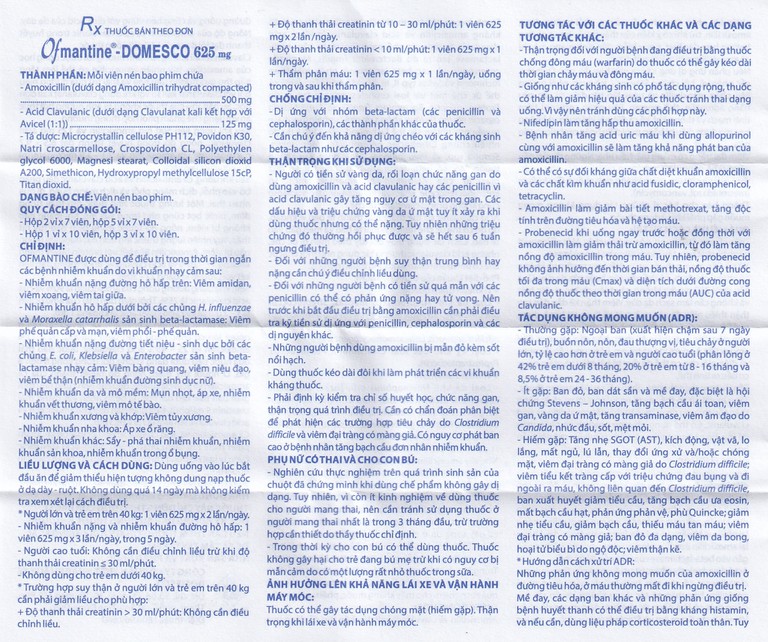Thuốc Ofmantine 625 mgđược dùng để điều trị trong thời gian ngắn các bệnh nhiễm khuẩn do vi khuẩn nhạy cảm sau: