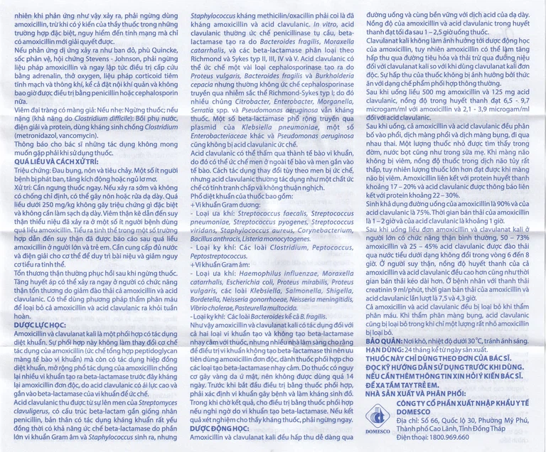 Amoxicillin và acid clavulanic đều hấp thu dễ dàng qua đường uống và cùng bền vững với dịch acid của dạ dày. Nồng độ của amoxicillin và acid clavulanic trong huyết thanh đạt tối đa sau 1 – 2,5 giờ uống thuốc. Sinh khả dụng đường uống của amoxicillin là 90% và của acid clavulanic là 75%.