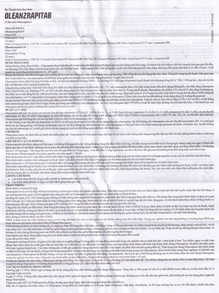 Oleanzrapitab được sản xuất bởi Sun Pharmaceutical Industries Ltd., (Ấn Độ). Đây là thuốc có thành phần chính là olanzapine, được dùng để điều trị bệnh tâm thần phân liệt.