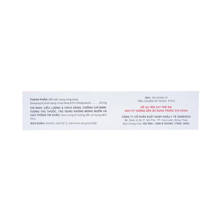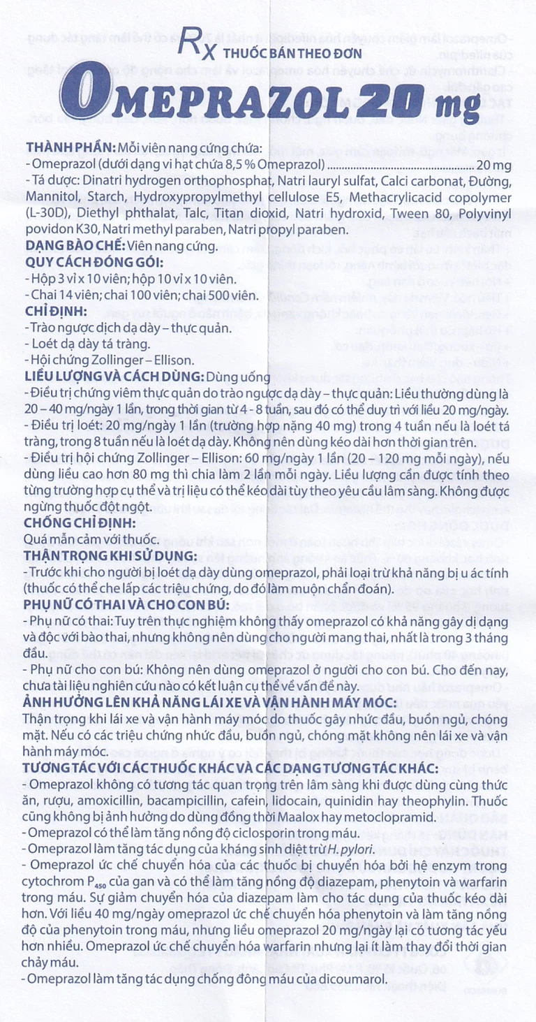 Omeprazol 20mg dùng bằng đường uống, uống buổi sáng.