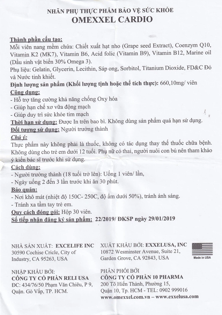 Omexxel Cardiođược sản xuất trên dây chuyền nhà máy đạt chứng nhận bởi FDA – cơ quan Quản lý Thực phẩm và Dược phẩm hàng đầu tại Mỹ. Ngoài chất lượng ưu việt, Omexxel Cardio còn có mẫu mã đẹp mắt, sang trọng và nhập khẩu nguyên hộp 100% từ Mỹ.