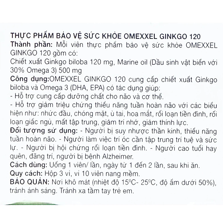 Omexxel Ginkgo 120 hỗ trợ tăng cường tuần hoàn não, tốt cho tim mạch.