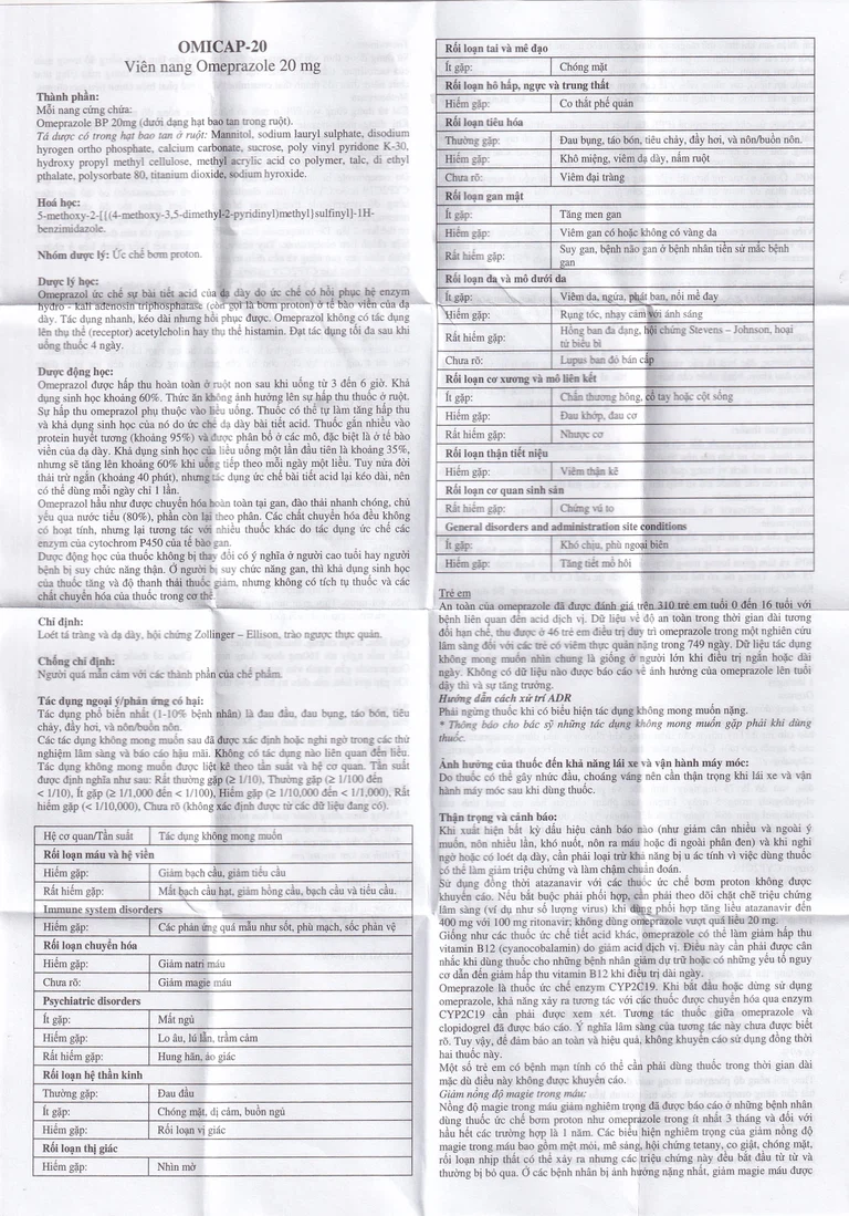 Thuốc Omicap – 20 chỉ định điều trị trong các trường hợp loét tá tràng và dạ dày, hội chứng Zollinger – Ellison, trào ngược thực quản.