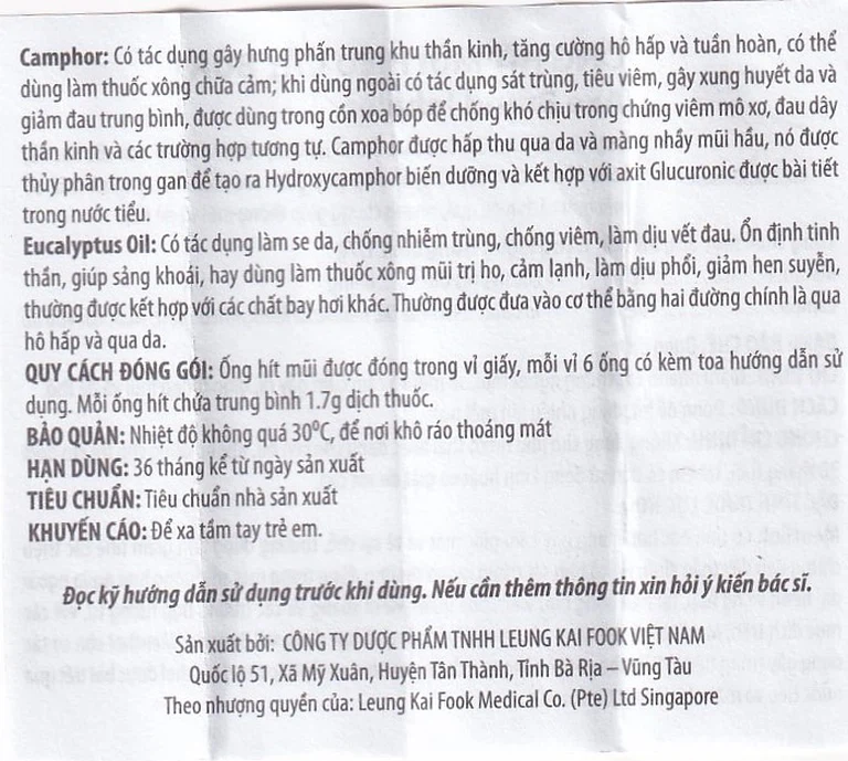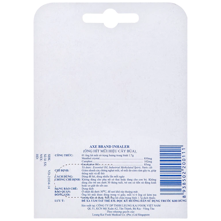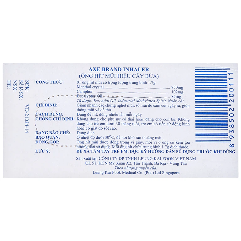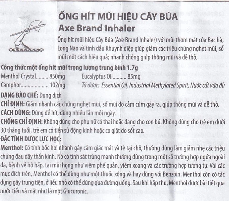 Thành phần của Ống hít mũi hiệu Cây Búa Axe Brand Inhaler