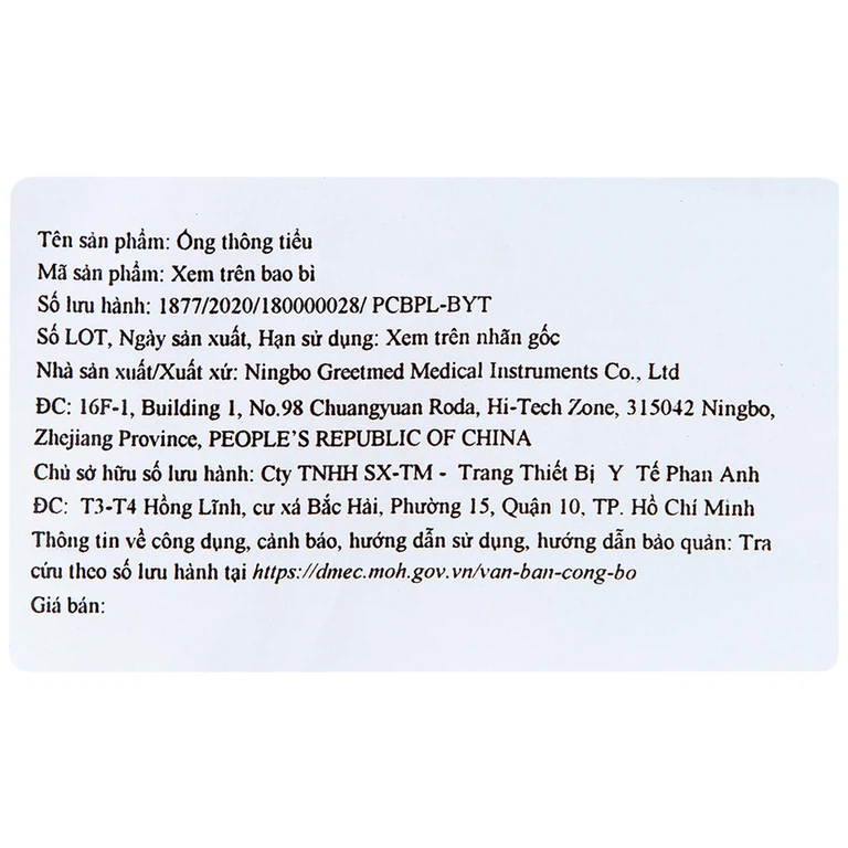 Ống thông tiểu 16 là sản phẩm của Greetmed.