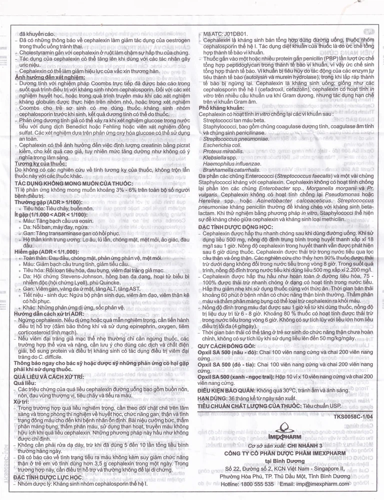 Công dụng của Thuốc OPXIL SA 500mg