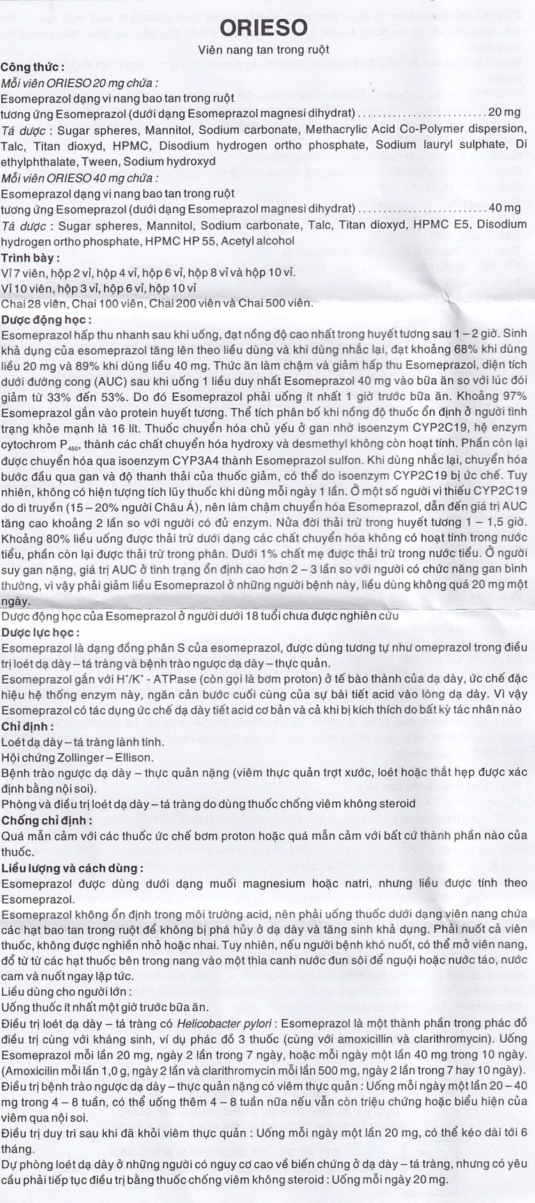 Thuốc Orieso dùng đường uống.