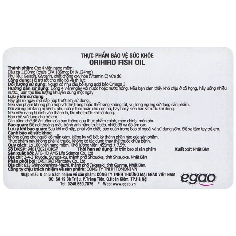 Orihiro Fish Oil hỗ trợ tốt cho não bộ và thị lực.