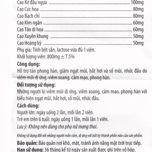 Thành phần cho 1 viên