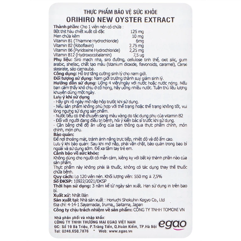 Tinh chất hàu tươi tăng cường sinh lý từ Nhật Bản
