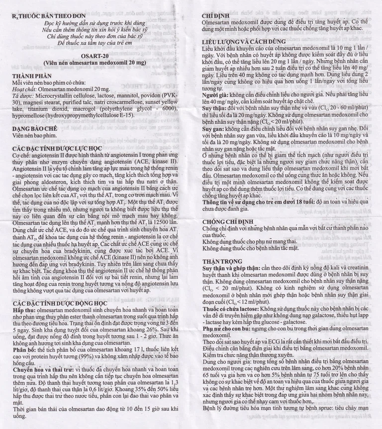 Thuốc Osart 20 chỉ định điều trị tăng huyết áp, xơ vữa động mạch .