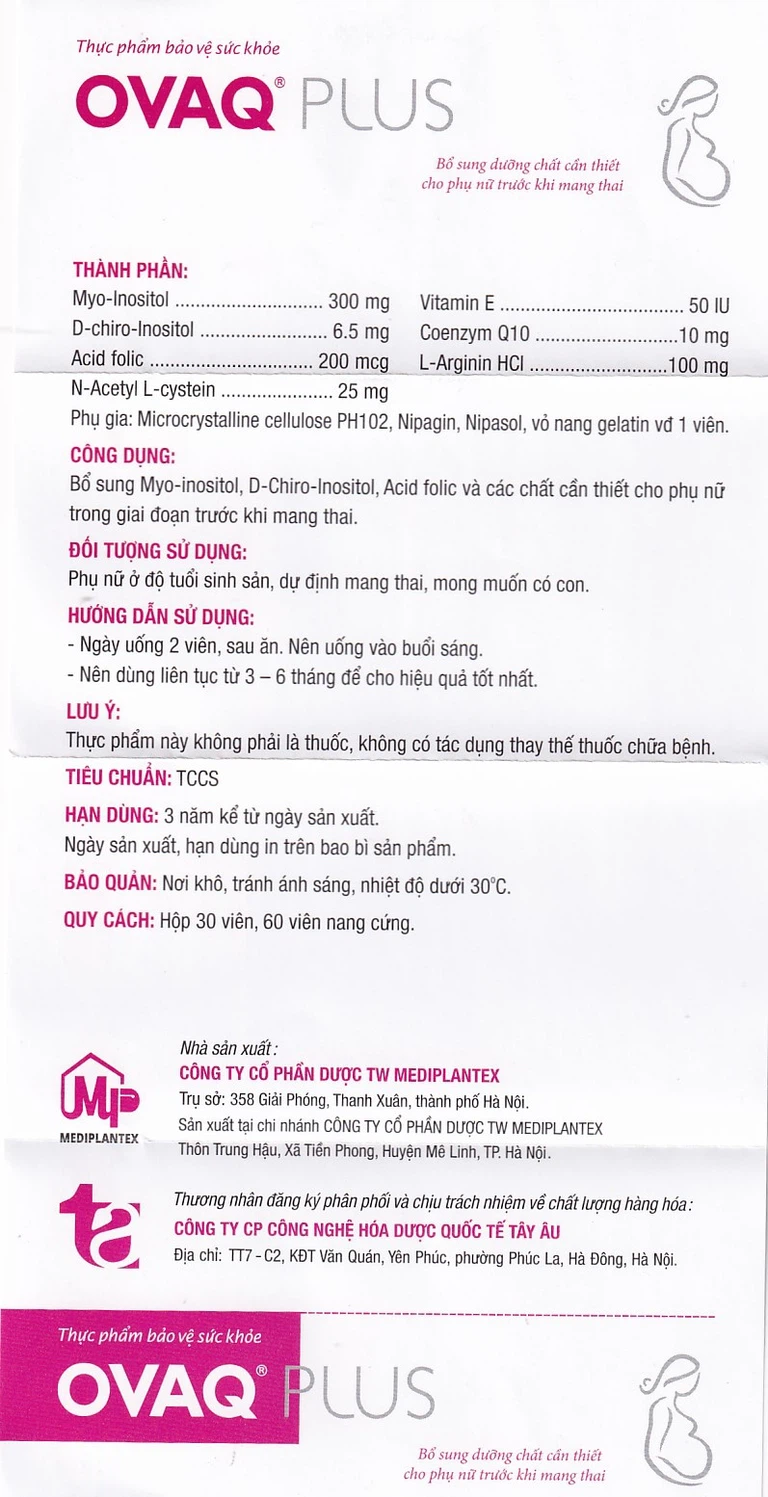 Ovaq Plus bổ sung và các chất cần thiết cho phụ nữ giai đoạn trước khi mang thai.