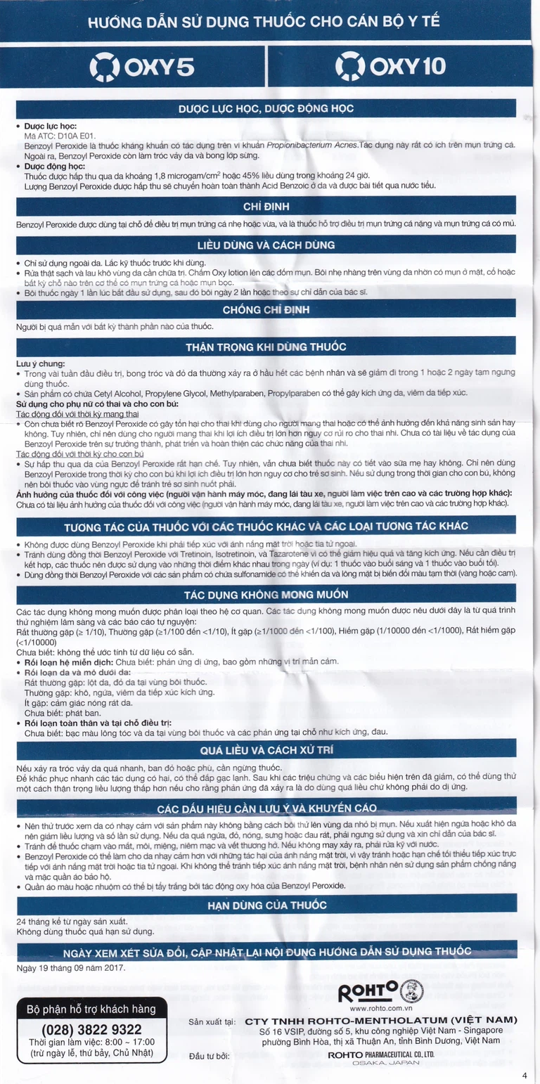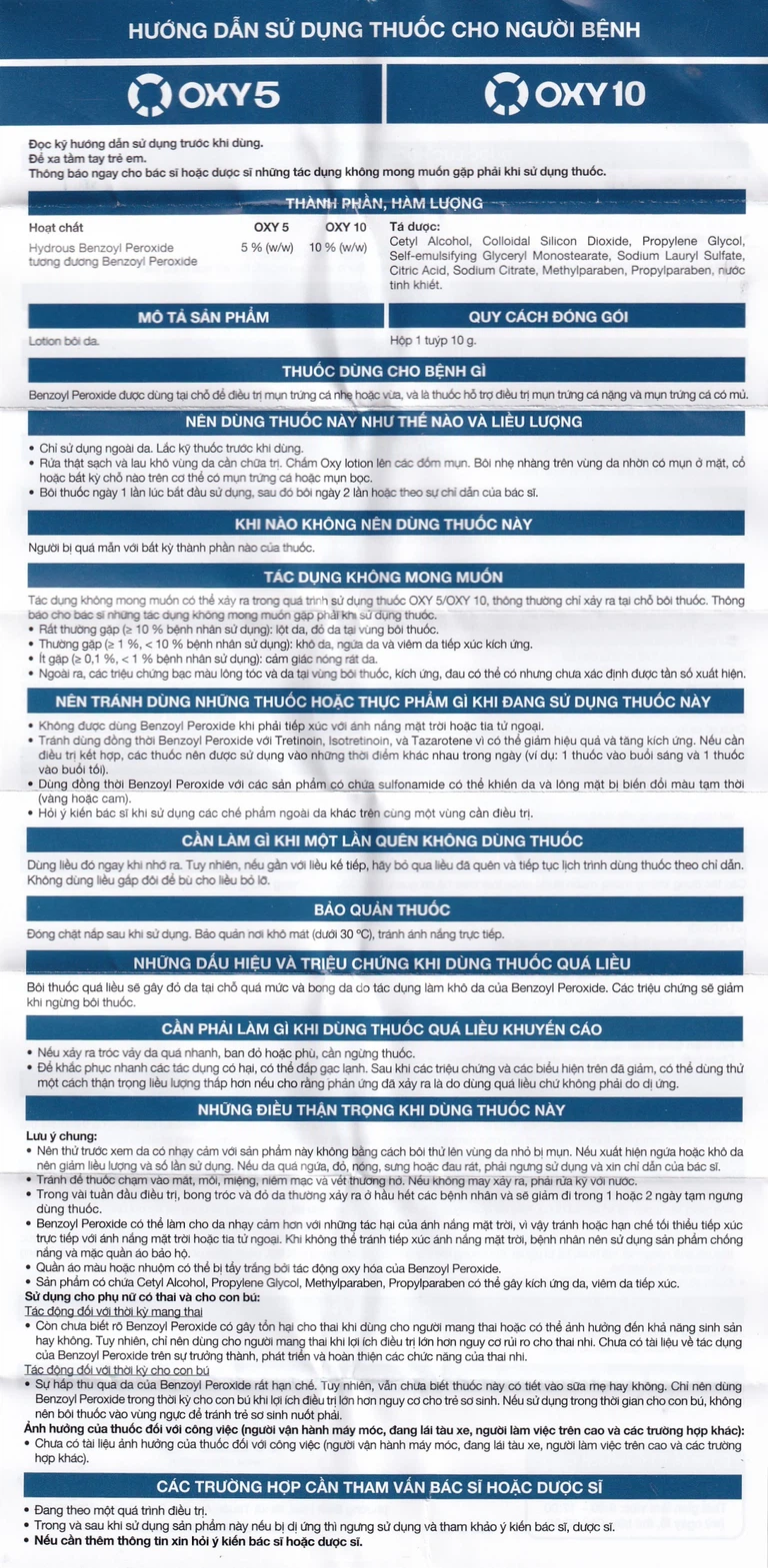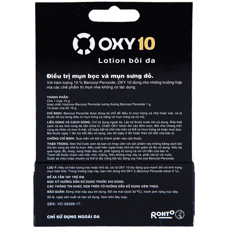Thành phần của Lotion bôi da Oxy10