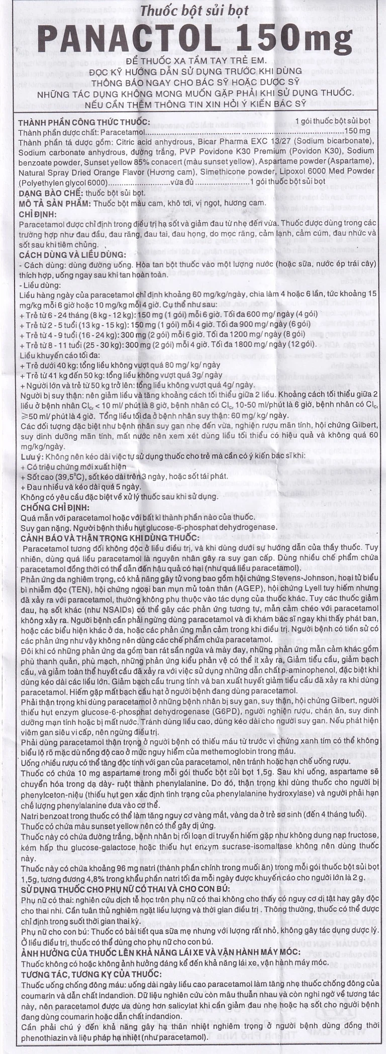 Bột sủi Panactol 150mg Khapharco vị ngọt, không đắng, hạ sốt, giảm đau cho trẻ (48 gói x 1.5g)